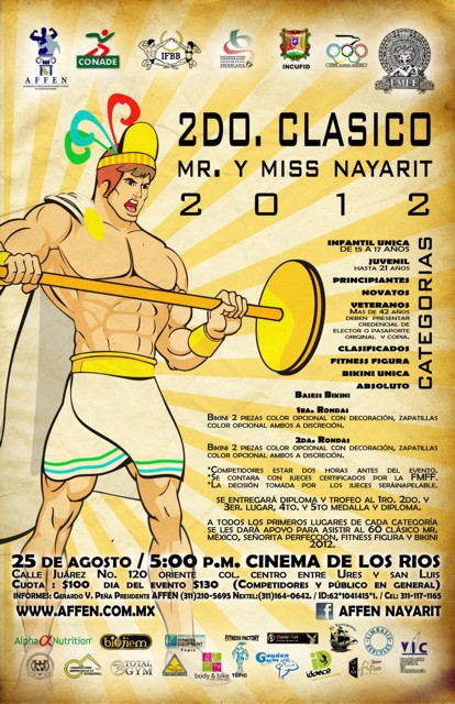 El pasado sábado 25 de agosto de 2012, celebramos el Segundo Clásico Mr. & Ms. Nayarit 2012, para cerrar la tercera competencia oficial del año que selecciona a los mejores atletas Nayaritas para ser trasladados a competir al Clásico Mr. México 2012.