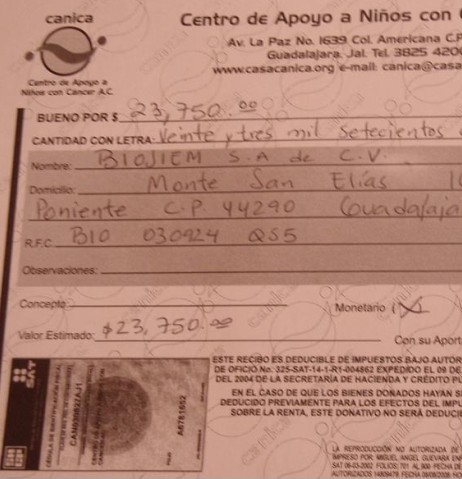 Finalmente, como lo mostramos en la siguiente factura, gracias a todos ustedes logramos hacer un donativo por $23,750 pesos en apoyo a los niños que sufren está terrible enfermedad.